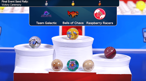 Over the coming events, Team Galactic notably scored fourth in the seventh event, Block Pushing, fifth in the ninth event, Steeplechase, and earned their second gold medal with Starry’s incredible run in the last event, the Sand Race. Although the team sat in eleventh place heading into the final event, Starry’s gold medal raised the team to fifth place overall for the conclusion of the 2017 Marble League. In a show of love for their team, Starry invited their teammates onto the top step of the podium with them to celebrate the gold medal, cementing their status as one of the most successful marble athletes in history.