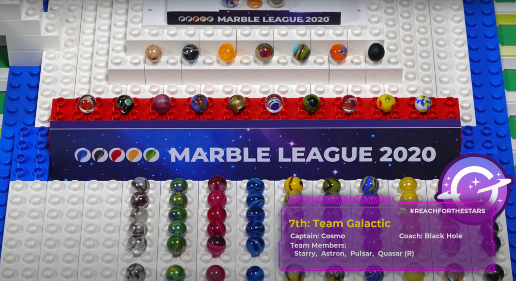 Hello and welcome to another RetRollSpective, where we reflect on the history of marble sports teams that have appeared in the tournaments of Jelle’s Marble Runs. This time, we’re focusing on Team Galactic, the hosts of Marble League 2020 and third-place medalists of Marble League 2022. Let’s blast off and discover what this team is made of!