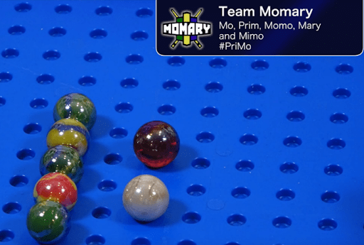 Prim dropped off the beam at 57 centimeters and Imar dropped off at 99 centimeters, while Rima and Mary cruised to the end of the beam and into the green corral, earning 130 centimeters each. The team traveled a combined distance of 416 centimeters and was not bested by the rest of the competitors. Team Primary’s gold medal cemented its advancement to the 2020 Marble League Qualifiers and put the team in fourth place after the Showdown, just two points away from the podium.