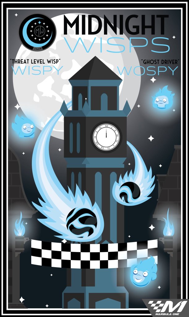 Remembering the hope and inspiration the athletes had at the beginning of their formation helped the team regain the motivation to give their all to training. But that wasn’t all that was accomplished that night. Unbeknownst to the athletes, Wyspy was paying close attention to the race between the members. The coach had recently received news of Marbula One and decided to test which athletes would be the best for such a competition. Because Wispy and Wospy were the fastest on the team, they were selected to represent the Midnight Wisps in Marbula One, as “Threat Level Wisp” and “Ghost Driver” respectively.