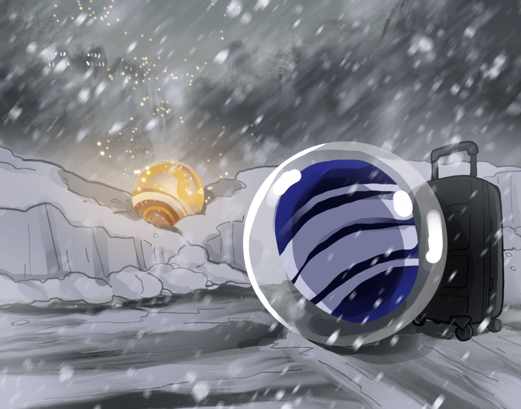 “I want to live again…” Stynth was by themselves back outside the hotel. It was still the night before Glassmas Eve and what was a snowstorm was now just flurries. Still, in tears, they did not notice a cyan marble covered in red and green stripes rolling towards them.