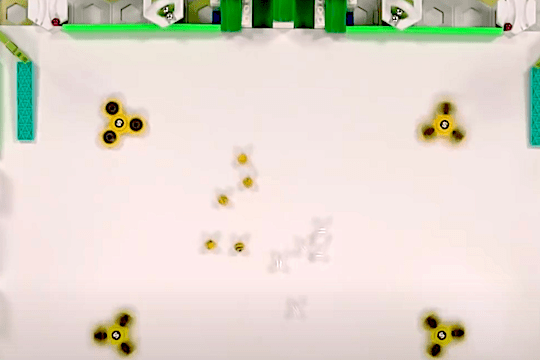 First, the Constrictors got past the Black Jacks in two chaotic rounds, with one Constrictor braking just in time to eke out a win. Then the team faced the Pinkies, and both took defensive formations that slowed the teams down to avoid contacting the fidget spinners.
