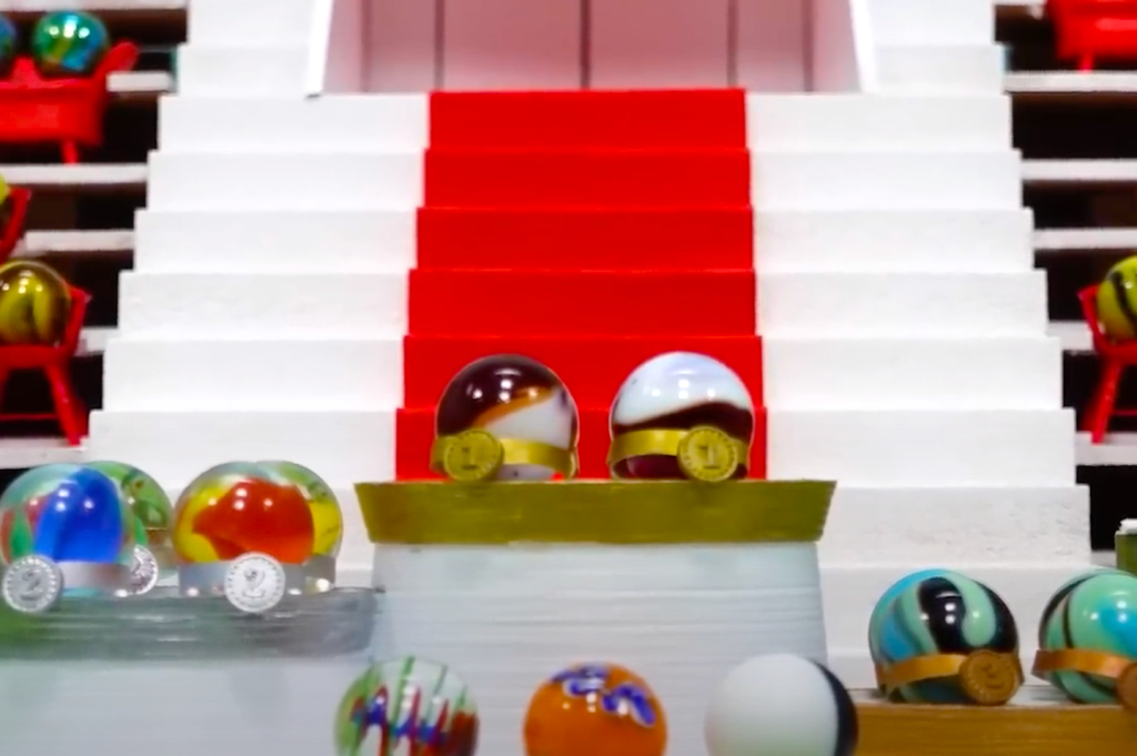 The last event of the day was this spotlight on the Swarm. This was a team just wrapping up four consecutive medal finishes, the best performance streak in Marble League history. Swarm team management agreed to an exhibition sand rally, giving Marblearth a second taste of their record-breaking skill.