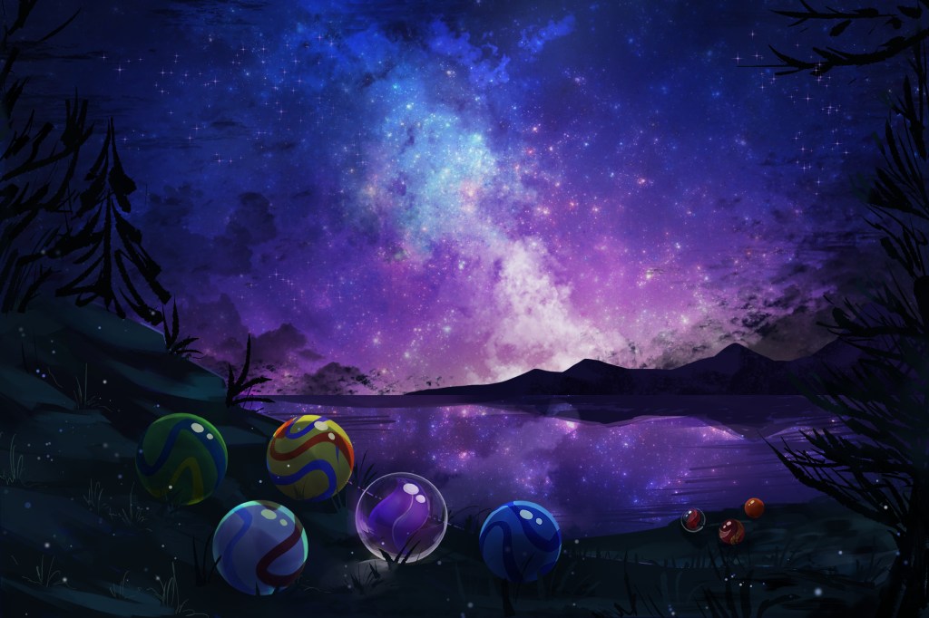 Four marbles were huddled around the campfire, donning marble racing uniforms of different palettes. “Right on time,” said Momo. “Congratulations on a successful showing out there.”