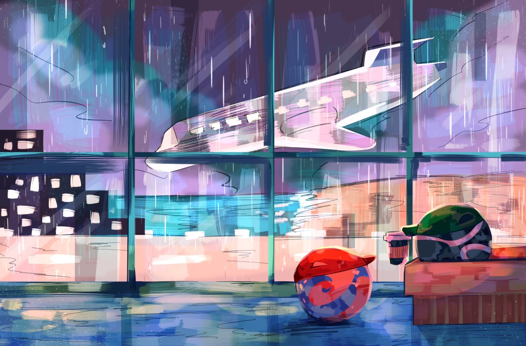 Waiting at the terminal gate, Blaze and Ember tried to keep to themselves, pairing casual streetwear with cool hats as makeshift disguises. But being the only major sports team in the city, any member of the Solar Flares had become pretty recognizable, especially since their debut in Jelle’s Marble Runs.