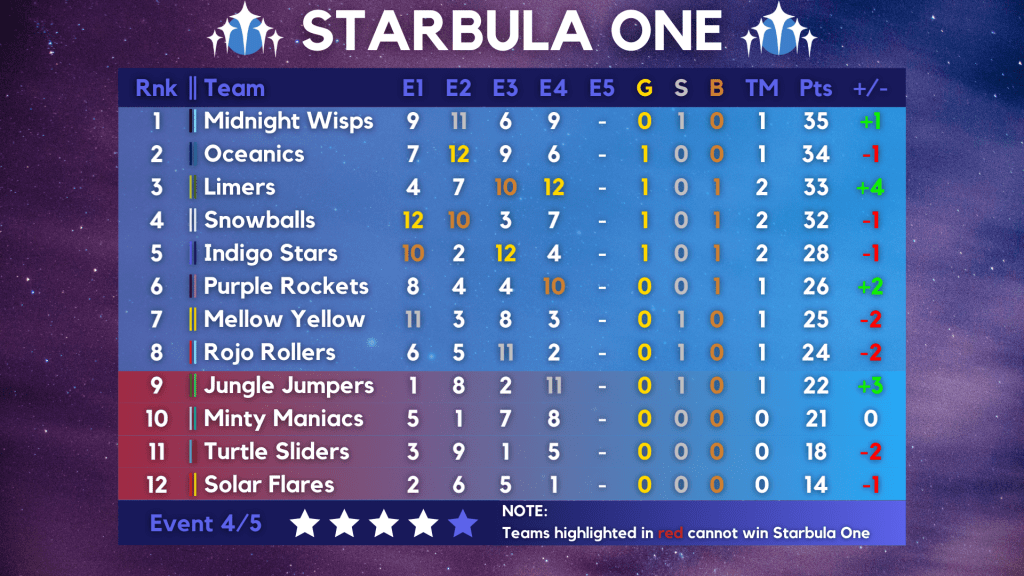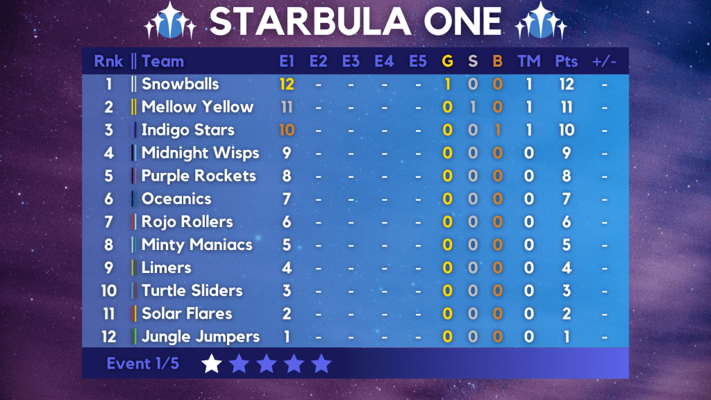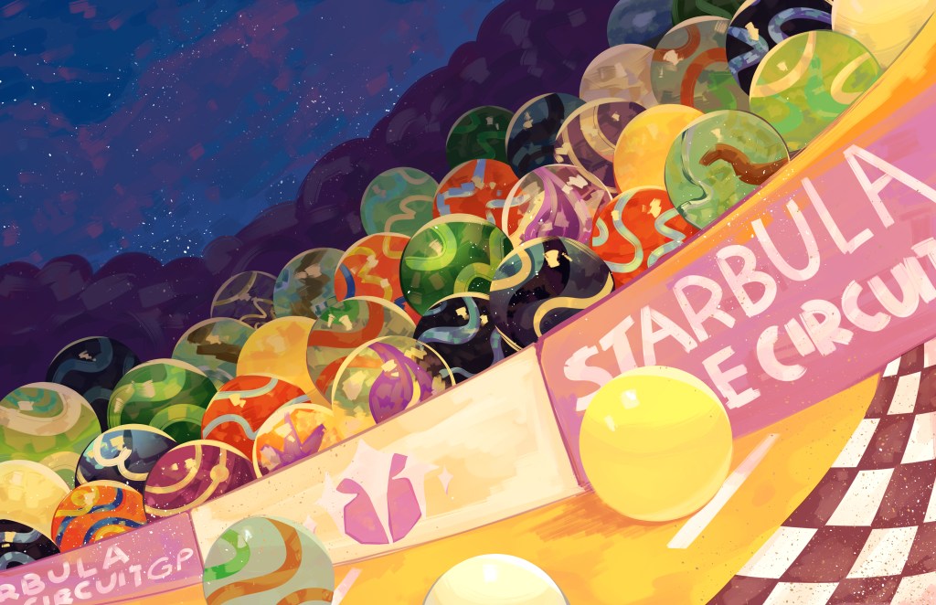 The Bright Hyu Bubble exceeded its maximum capacity less than two hours after its box office opened, with fans traveling across Marblearth for the first event of Starbula One. Consisting of five events: a traditional Grand Prix, street circuit, tag-team rally, obstacle course, and nighttime elimination race, the scoring system would be linear among all twelve teams, with the champion of the tournament earning the coveted Gold Star.