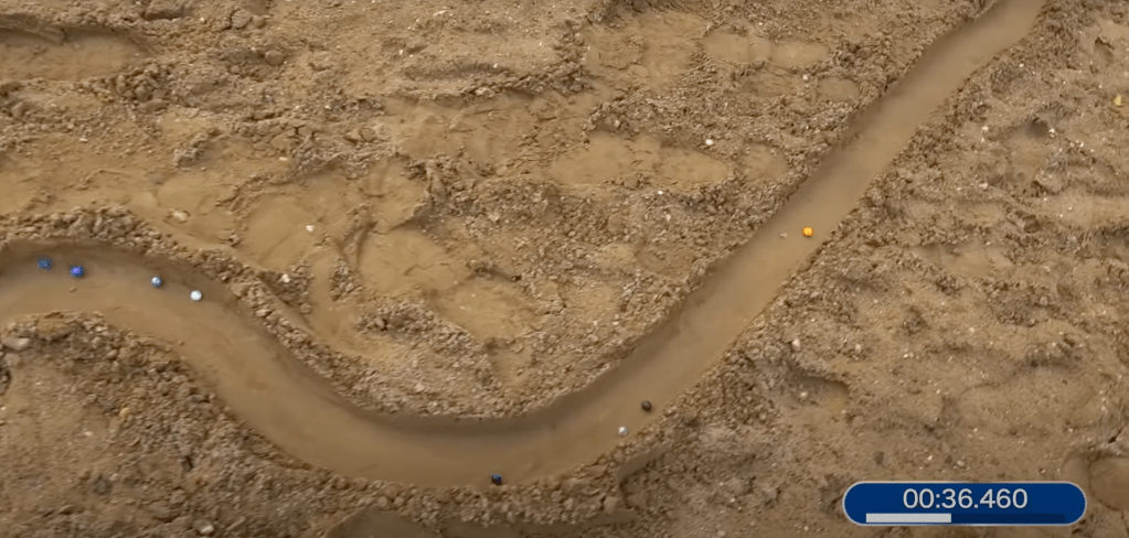 Their 15th place finish in the Underwater Race, accompanied by a bronze by Hop, left the writing on the wall for the Quicksilvers, who needed silver or better to escape last place in the standings. That fate rested on an athlete as familiar with the sand as Quicksilver themself – Silvery. Entering the event as part of the first heat, Silvery performed a key divebomb maneuver to pass Lemonlime and Ocean towards the final straight, slotting them into a transfer spot for the final race. As they trekked back up the hill at Doornse Gat, Silvery heard a line from Greg Woods that could have changed their season: