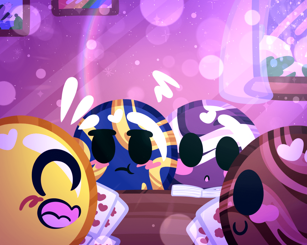 “Sometimes it’s better not to know the precise answer to everything, isn’t it? That way, nobody goes home resentful,” chuckled Yellah. “Anyway, I think my hand takes yours, Shock, so…” they continued, and Shock groaned as they handed everything over.