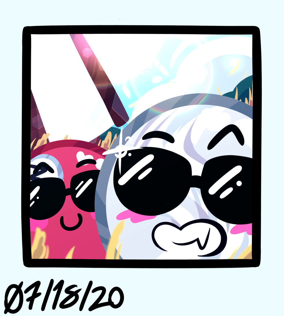 Quicksilver opened their front door, motioning to a frame of a Rollaroid on a nearby table. There, Red Number 3 and Quicksilver were donning sunglasses and smirking, not unlike the uniform of Cool Moody.