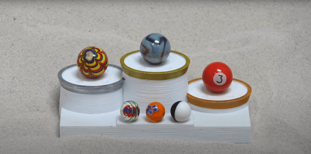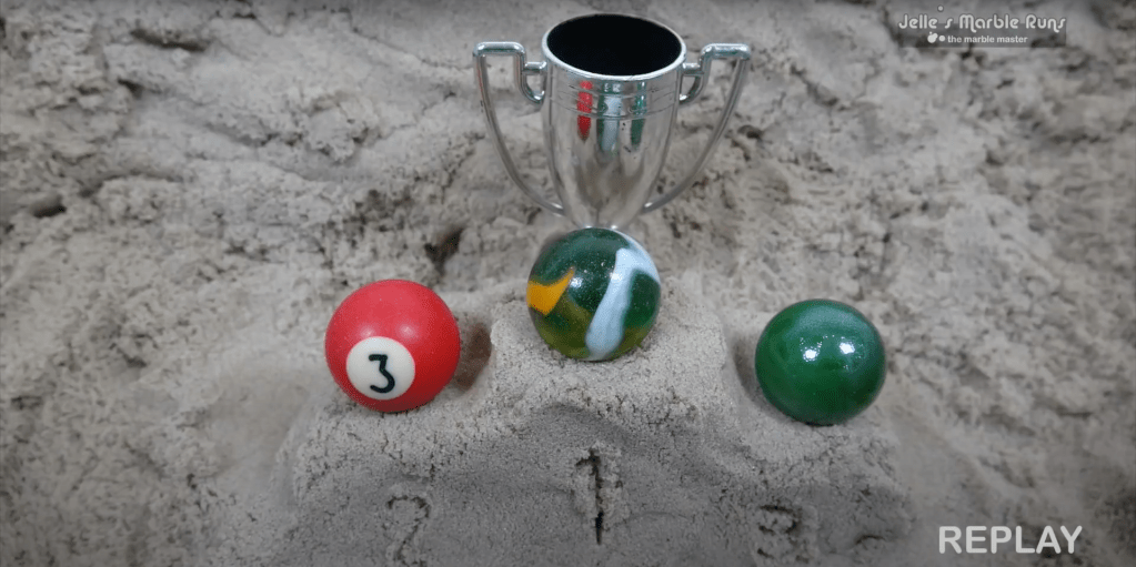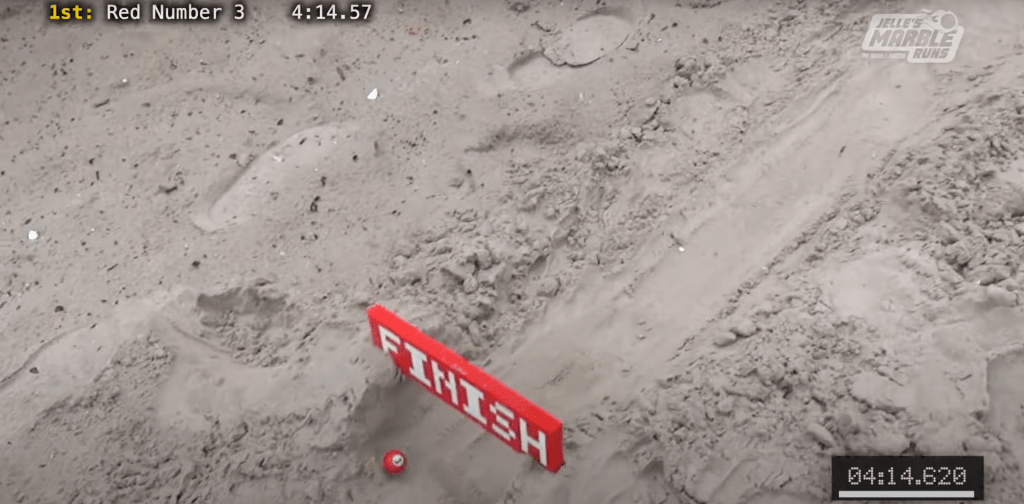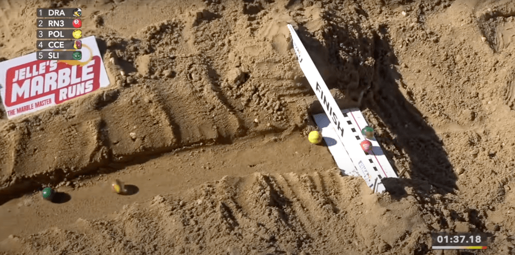 Meanwhile, the marble sports series sponsored by Jelle’s Marble Runs became more popular than ever. Two Grands Prix of their new circuit-style racing tournament, Marbula One, went viral within two months of a clip from one of JMR’s oldest exhibition races, the Sand Marble Rally 500-Foot Race, which became an overnight sensation when reposted on social media, captivating casual and hardcore fans alike.