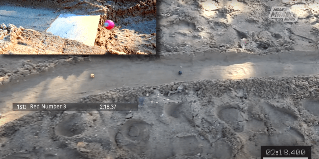 “I was competing with Red Number 3 for pretty much the whole 2017 Rally. That marb was just pure talent. None of us had ever heard of them before [the 750 Foot Race], but it became obvious that they were a really good racer,” Dragon’s Egg remarked. “Red Number 3 in 2018 was just the pinnacle of marble sports. In a group of 20 marbles—the best sand racers in the world, no less—they came in the top three…five times. In just eight races! They’re without a doubt the most pure sand racer ever.