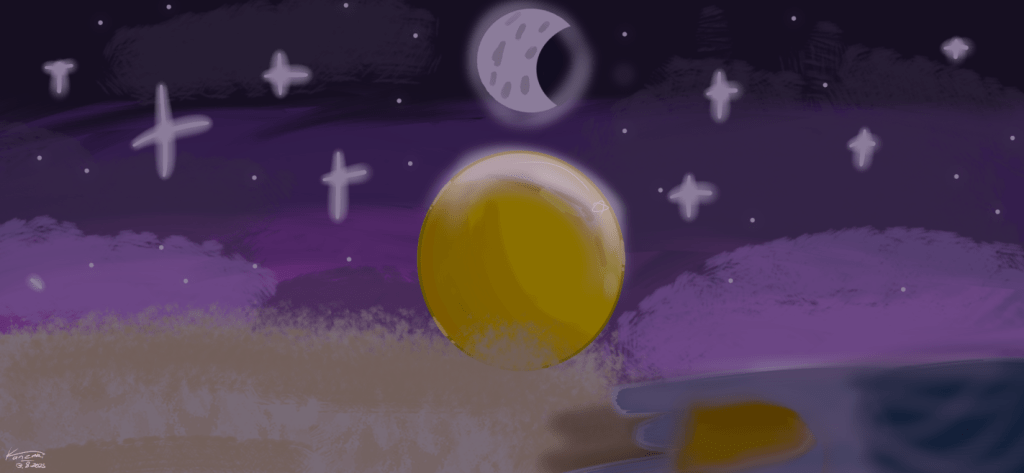 Yellim didn’t like to angst, and they rarely indulged—but a balmy summer’s night beside the wine-dark sea was perfect for it. Between the almost-full moon and the distant insomniac glow of a parking-lot streetlamp, their reflection was just about visible in the waves, which crashed against the sand with no real conviction and occasionally stung them with the spray.