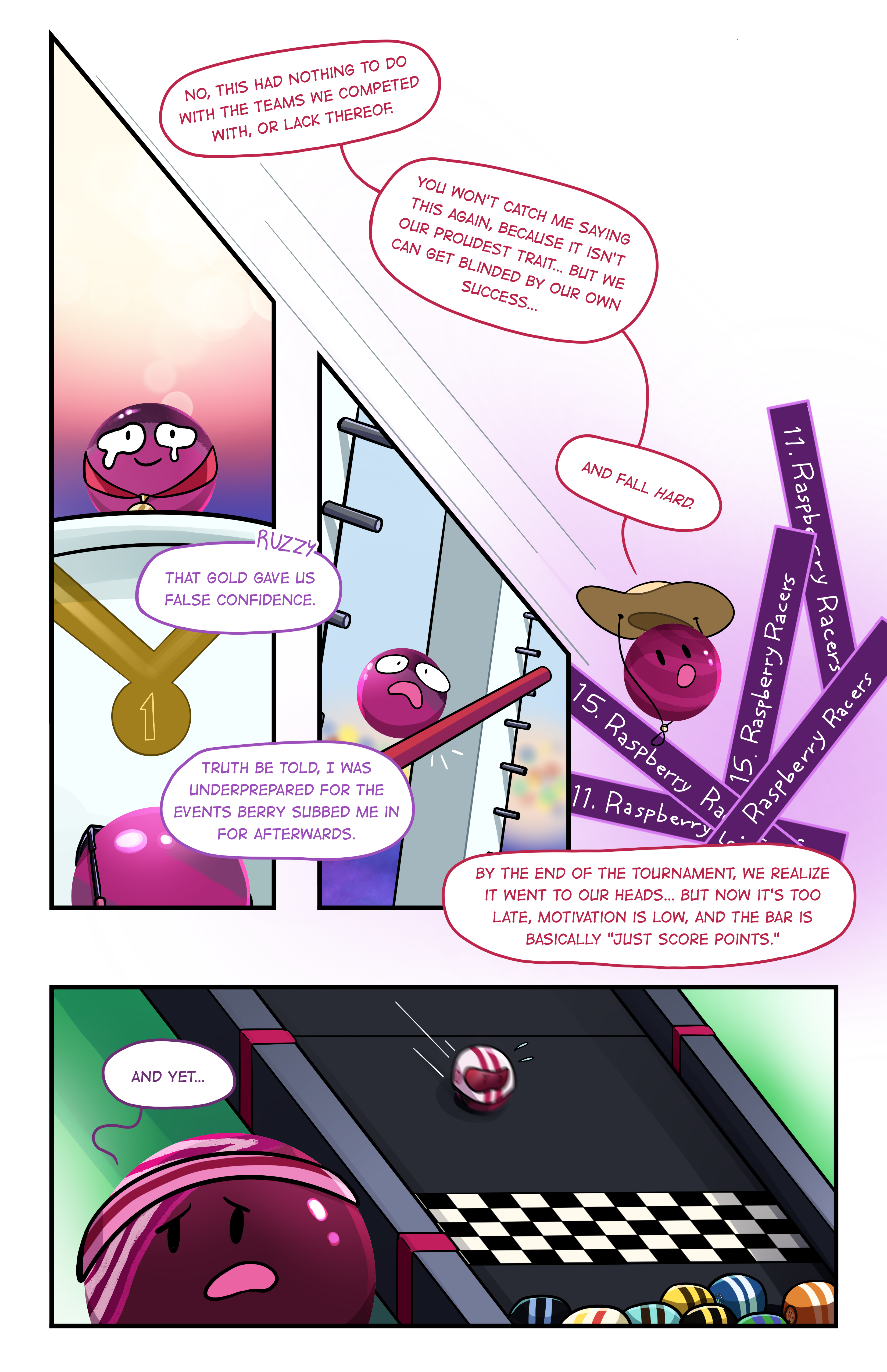 These thoughts and more go through my mind as Editor-In-Chief—as I wonder where every experience these athletes have gone through fits into their overall narrative. I wonder how the Minty Maniacs, with their redemptive gold medal in Marblocross, will find a way to give back to their home region of Herbotamia for their undying support. I wonder where the Jungle Jumpers, after a tumultuous year of development around their hometown of Lewara, will train for future competitions. I wonder if Dr. Crolley, that rogue paranormal investigator, will come out of hiding with some strange conspiracy about the Hazers doing terrible in final events. I wonder how Candy, former captain of the Jawbreakers, will carry on outside of Jelle’s Marble Runs.