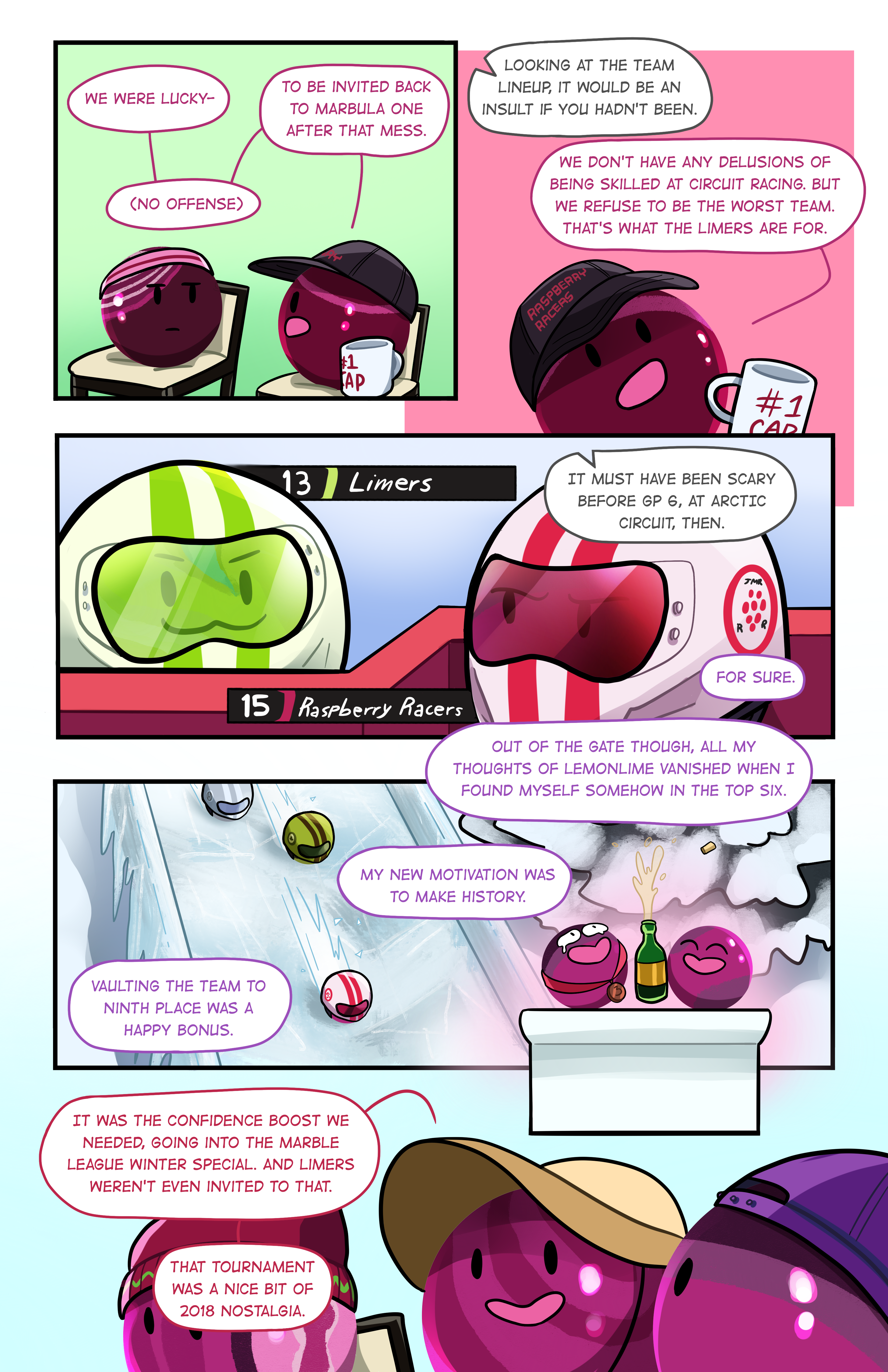 This comic was originally published on the Project Marblearth Blog as an addendum to “RetRollSpective – Raspberry Racers“. All writing and illustration were done by Piney.