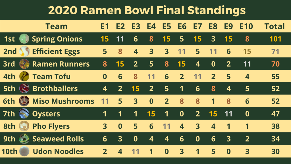 On the other side of the results, Coach Bombay was in misery. Captain Mallard hadn’t been able to crack the top half of the race order and finished tenth, which could have been good enough to surpass the Raspberry Racers if Razzy had placed behind Mallard. In the end, Coach Berry’s decision to have the Racers captain compete in the final event paid off.