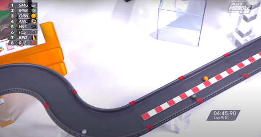 After the tournament, it was time to head back to the track for the second season of Marbula One. Wospy got the first start at Minty Mania, having asked Wyspy to not race at the upcoming O’raceway due to last season’s incident. With the new form of qualifying, four teams would not make it to the race this season, and Wospy qualified, just barely, in sixteenth. Unfortunately, the race did not go any better for them. After watching Speedy get stuck in the conveyor belt on the fifth lap, Wospy had a flashback to their incident just a season ago and did not recover for the rest of the race, finishing in fifteenth with a time five seconds behind Starry.