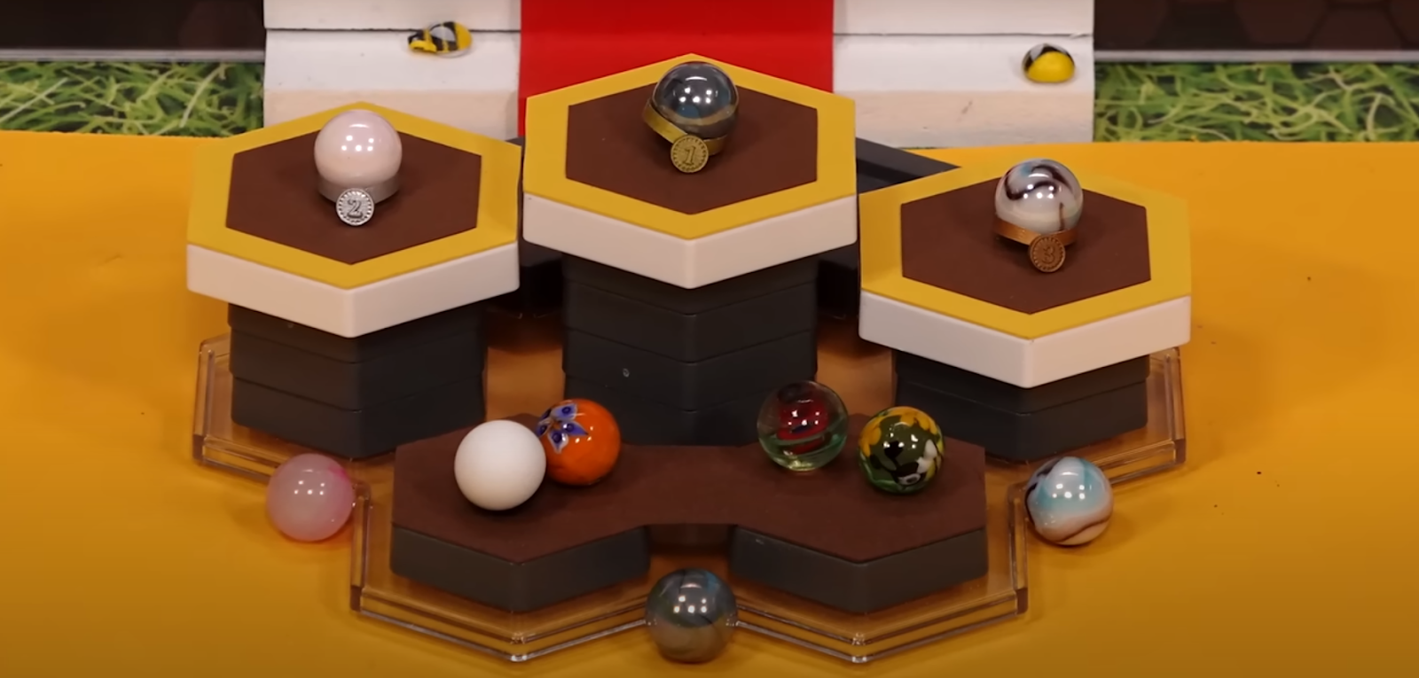 The Bumblebees, Pinkies, and Crazy Cat’s Eyes on the podium for Tug-of-War. (Photo Credit: Jelle’s Marble Runs)